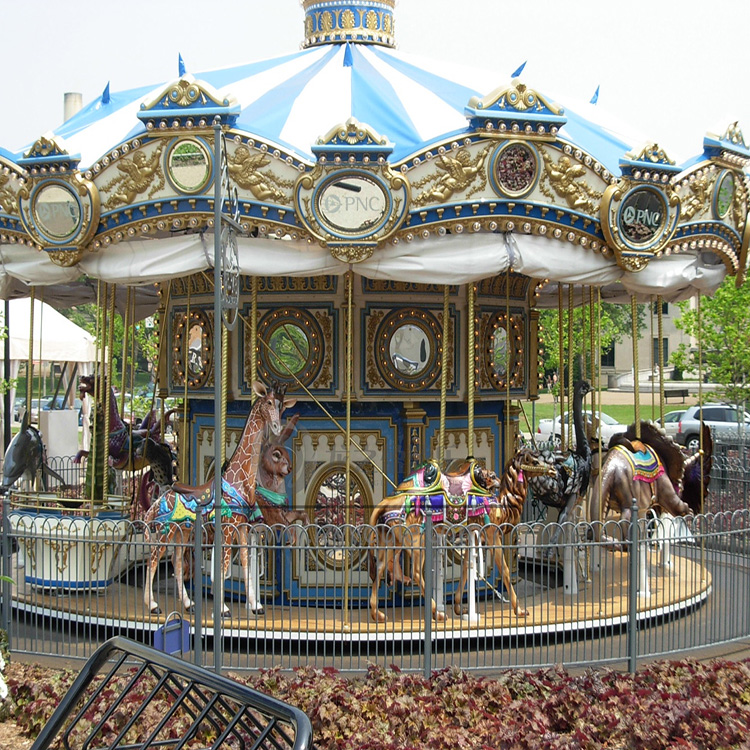 1、旋轉木馬是一種非刺激性游樂項目,豪華轉馬主要依賴漂亮的外觀造型,絢麗多彩的燈光和美妙的音樂吸引人,所以說轉馬的整體造型是非常非常重要的。一臺產品無論它怎樣有趣,只要外觀不能在*一時間內吸引人,就不可能給自己帶來顧客,相反,只要產品能在*一時間能夠吸引顧客,給顧客一個好印象,他就可能成為你的常客,所以豪華轉馬的造型非常重要.